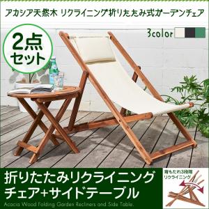 アカシア天然木 リクライニング折りたたみ式ガーデンチェア Resse レッセ 2点セット(チェア1脚+サイドテーブル) W55