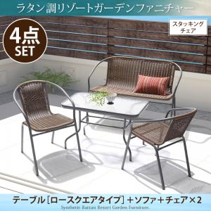ラタン調リゾートガーデンファニチャー Rashar ラシャル 4点セット(テーブル+チェア2脚+ソファ1脚) W80