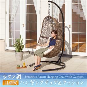 ラタン調 自立式ハンギングチェア&クッション Ruphan ルーファン